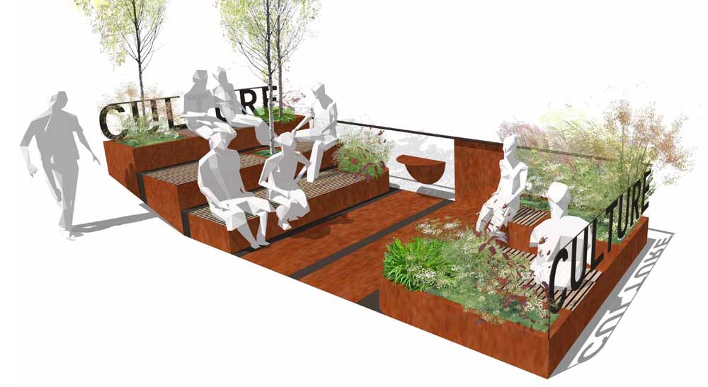 Working in collaboration with FutureCity and Hat-Trick Design, the cultural vision was captured as a series of books identifying the vision, the projects and the toolkit. This suite of design documents was designed to allow stakeholders to not only ‘buy-in’ to the idea of a cultural district but also provide design guidance to deliver and direct the many spatial opportunities and material/furniture specifications within the public realm.