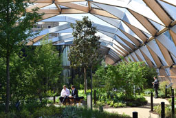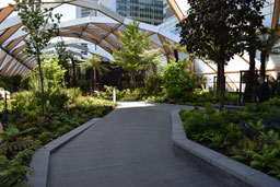 The Crossrail station at Canary Wharf incorporates a large, predominantly green, rooftop park for use by both the local residents and passengers. The planting design concept and palette were developed by Growth Industry in response to a strong cultural and historic narrative, inspired by the discoveries of the great Victorian plant collectors Hooker and Douglas and the incoming exotic species that arrived through the local docks. The space is divided to showcase both Occidental and Oriental species. The semi-permeable canopy structure enclosing the park helps to create a localised micro-climate allowing the use of more tender species in a location that is subject to strong wind turbulence created by the adjacent tall buildings. Careful species selection has been necessary to overcome physical constraints, including shallow substrate depth and overhead structures, in order to minimise future maintenance requirements. Environmental change and proposed local development were also considered in order to offer a sustainable and futureproof soft landscape solution. The park opened in May 2015 and has already proved to be a very popular venue for community events.