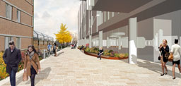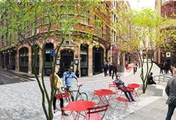 The new public space will benefit from active ground floor use associated with the newly developed Apart Hotel and opened up access routes along Vine Street and to the Minories.