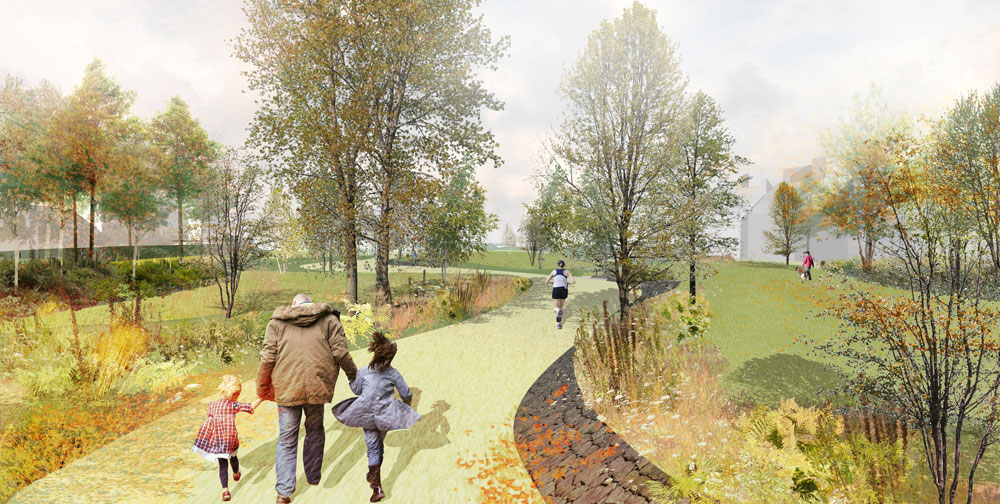 Client: ConfidentialGrowth Industry developed design proposals for a new linear park as part of an invited competition in the Weald of Kent.