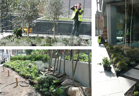 Client: Gillespies LLP Developers: Native Land / Grosvenor Architect: Rogers Stirk Harbour + PartnersExceptionally high density planting provides show-garden quality for the opening of this award winning development