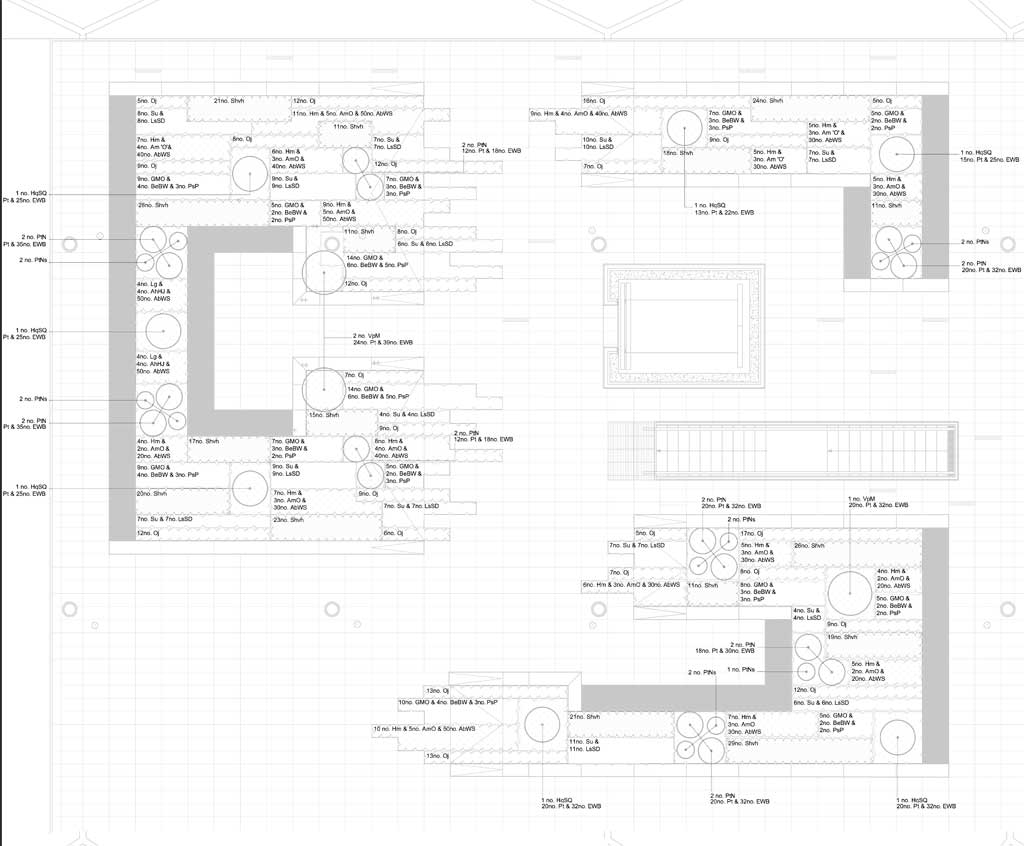 Plant selection was very carefully considered to ensure scheme longevity and ease of maintenance. Eventual size, habit and a tolerance of the harsh environmental conditions were key factors. The shade created by the ETFE canopy and the tall buildings to the south combined with the strong gusty winds experienced at this elevation made for a challenging project.