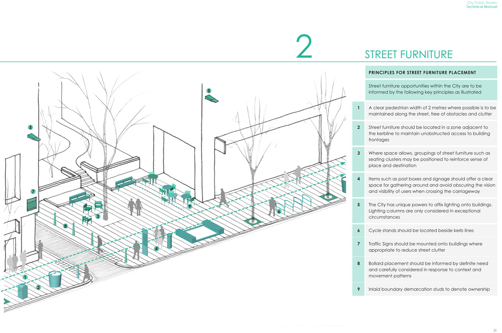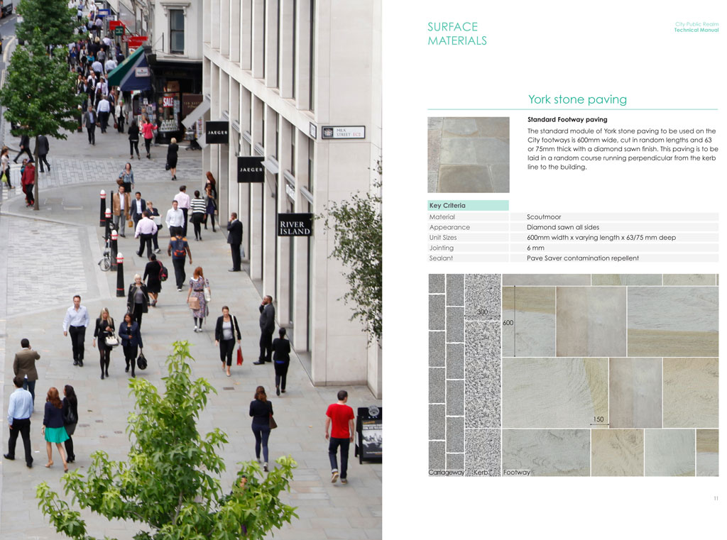 Growth Industry utilised knowledge gained in the course of its production of the City’s Public Realm Technical Manual to quickly and clearly present the high quality materials to be used within the refurbished space.