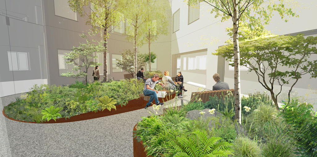 Landscape courtyards enhance the restorative appeal for a new hospital care facility in South London