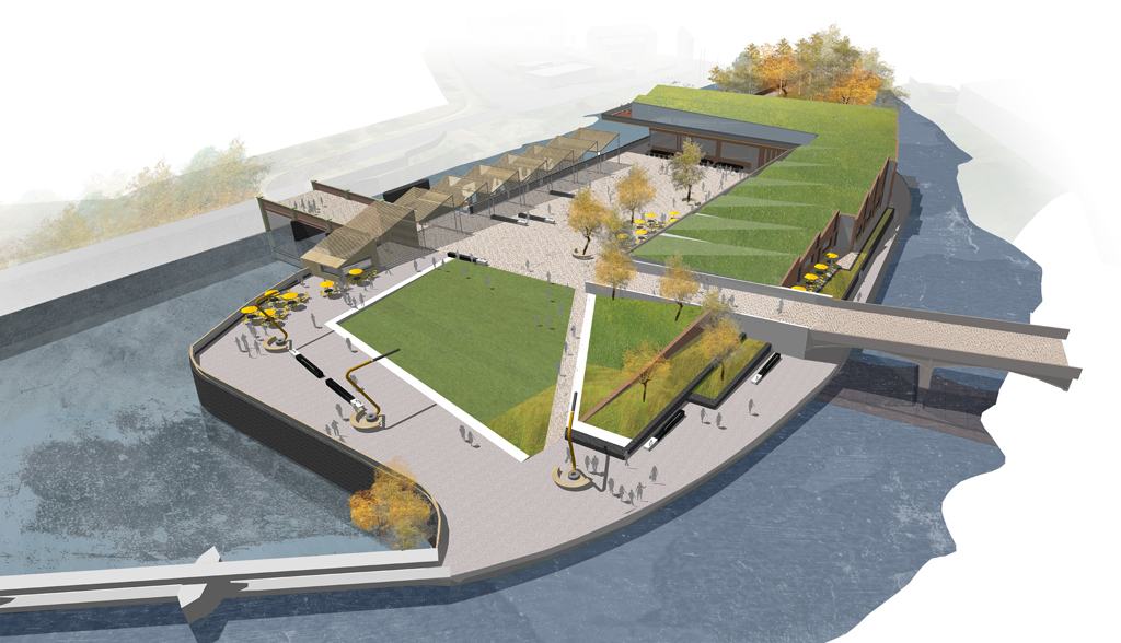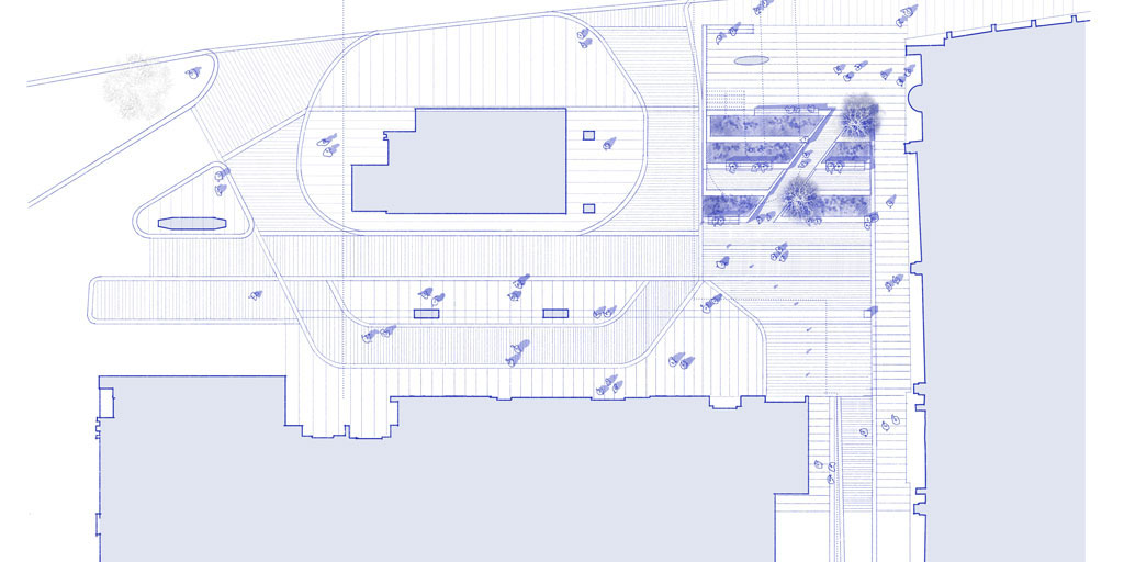 Two new public spaces are proposed either side of Upper Thames Street in the City of London to once again reintroduce The City with the River Thames. Located at Queenhithe, one of the few remaining harbours or hythes on the northbank and home of the Grade 1 Wren Church of St James Garlickhythe (historically known as the beacon for arriving sailors), the spatial designs exploit level change, existing trees and connections to the river to develop a series of attractive, connected and inviting green public spaces. Continuous sinuous seating, cantilevered planted pergolas and landscape terraces combine to enhance the environment to tackle local microclimatic challenges of filtration of air borne pollutants along Upper Thames Street. Enhanced pedestrian connections supported by the groundfloor activities of two neighbouring hotel developments and historic guild halls, will recast Little Trinity Lane and Queenhithe public realm as attractive destinations enroute to the River.