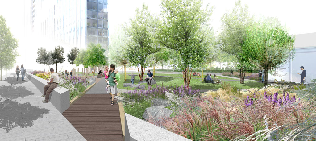Client: Gillespies LLP / Canary Wharf Group PLCCultural and historic narratives drive the design of this unique "floating" park