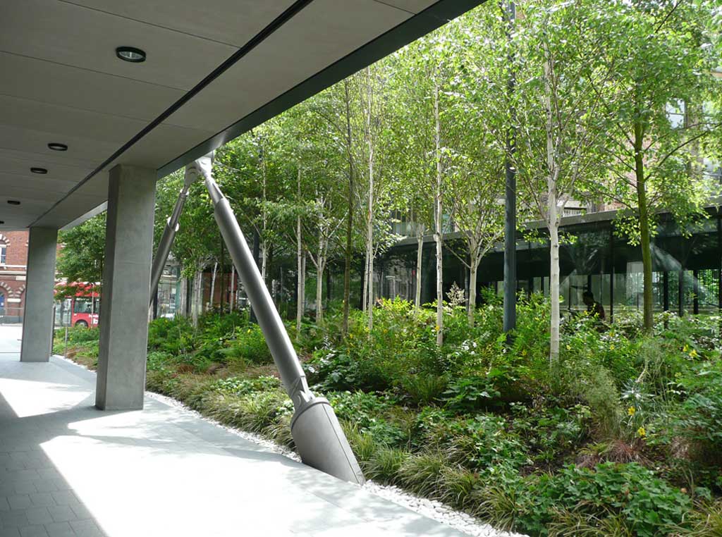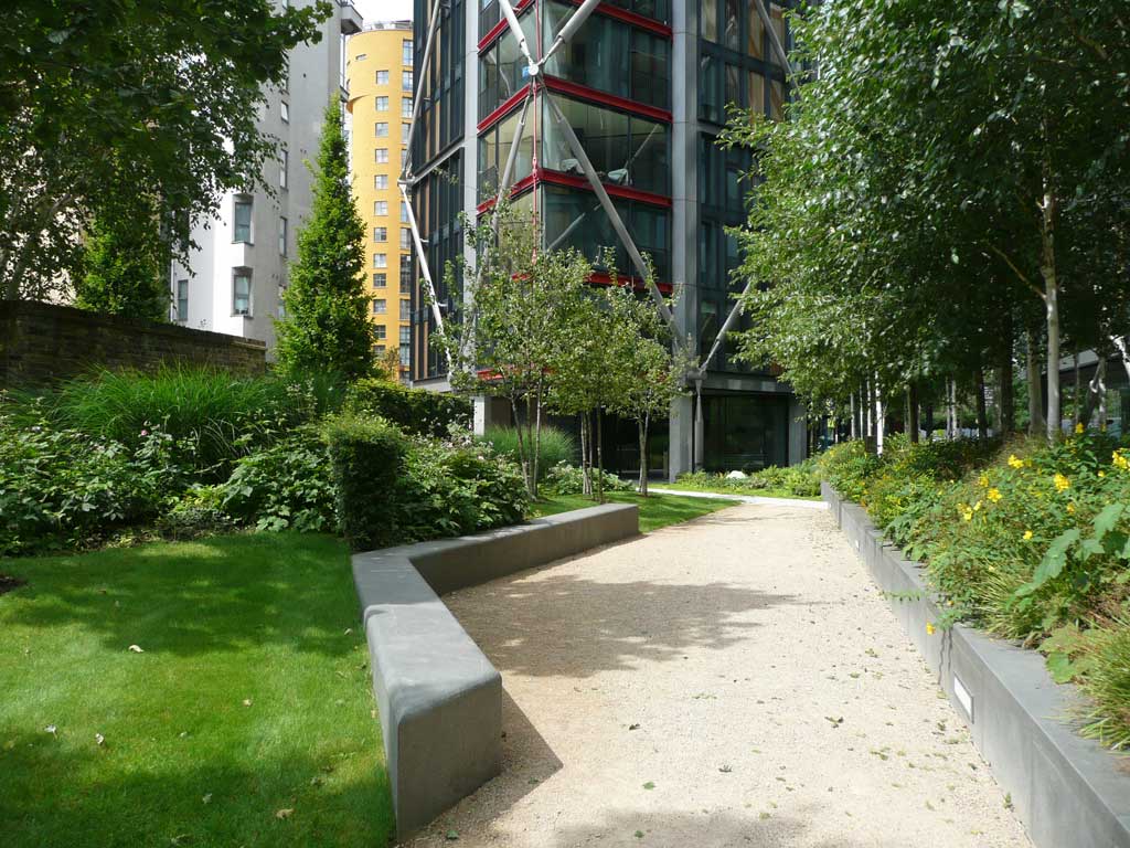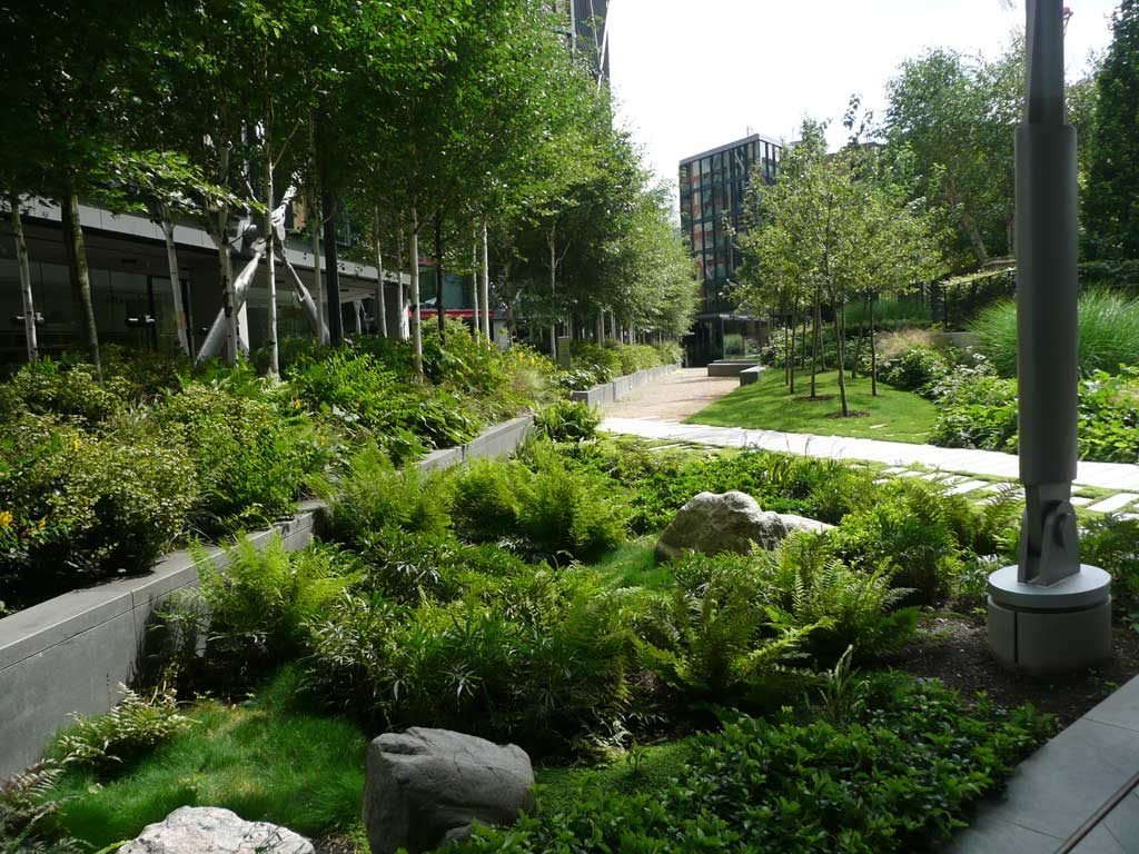 Client: Gillespies LLP Developers: Native Land / Grosvenor Architect: Rogers Stirk Harbour + PartnersExceptionally high density planting provides show-garden quality for the opening of this award winning development