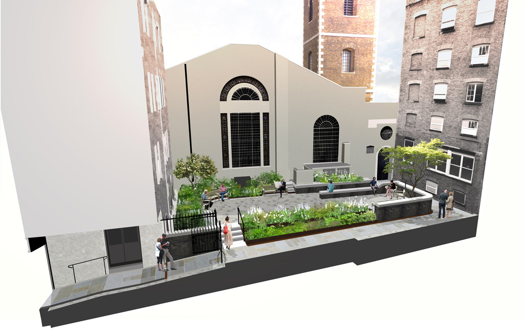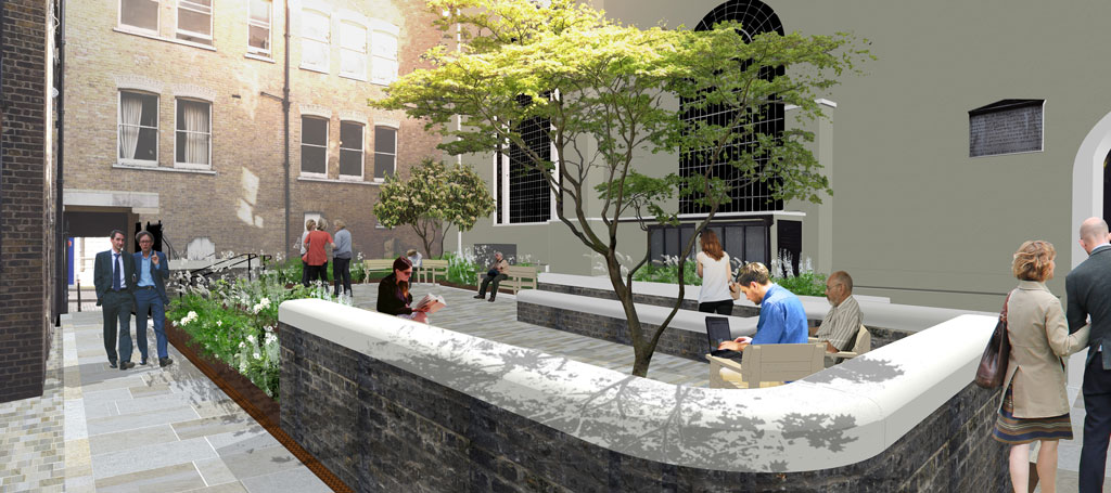 Client: City Public Realm, Corporation of LondonSustainable planting measures within a refurbished historic space will enhance the appeal of one of the City’s most hidden churchyard spaces