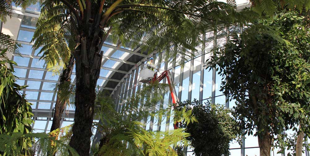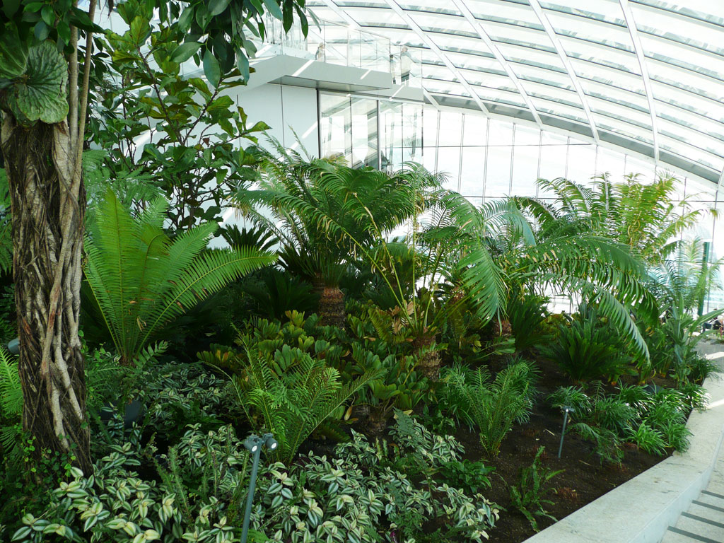 Situated on the upper floors of the already iconic ‘Walkie Talkie’ building this new public space is Europe's highest public park and features extensive planting surrounding a restaurant offering panoramic views of the Thames. In association with Kew Gardens a unique scheme has been developed that takes advantage of the challenging microclimate created by the three-storey glass canopy. Set upon a steep south-facing slope the planting exploits the variable site conditions to present visitors with an informative walk through a diverse range of plants. Broadly divided into distinct zones from the tree ferns of primeval forest to cycads, early flowering species and finally diverse floral plains. The scheme showcases both familiar and unusaual plants from around the globe. The project, completed in 2014, presents on-going challenges. A complex procurement strategy was required to source appropriate plant material from multiple sources worldwide, whilst the aerial location required unique solutions to be developed to achieve successful implementation and long-term management.